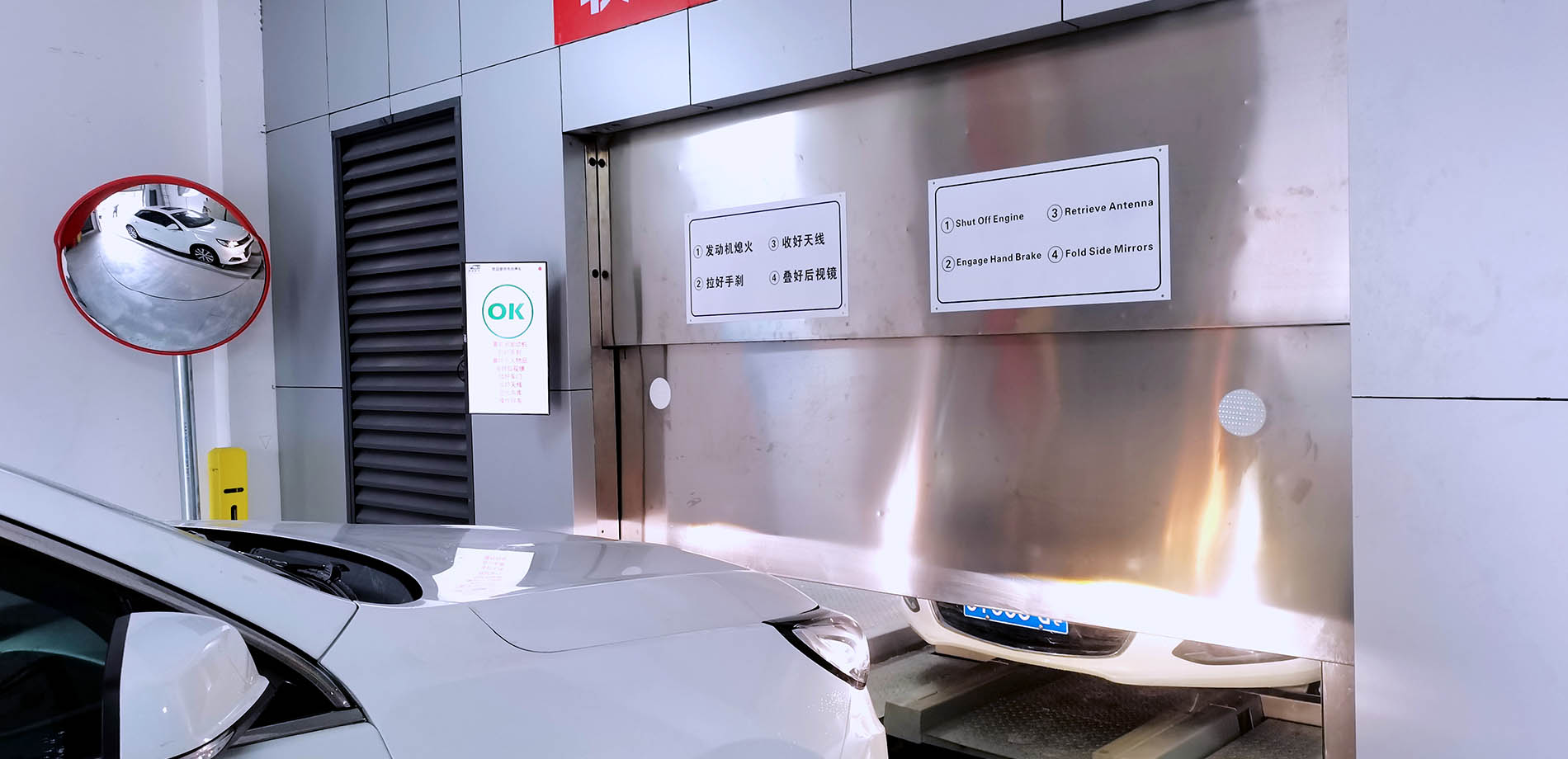 本項(xiàng)目為地上+地下類型,采用新型垂直升降類車庫(kù)——大轎廂,采用梳齒式智能搬運(yùn)器,共設(shè)計(jì)6個(gè)出入口。存取車采用最先進(jìn)的人臉識(shí)別,快速高效。